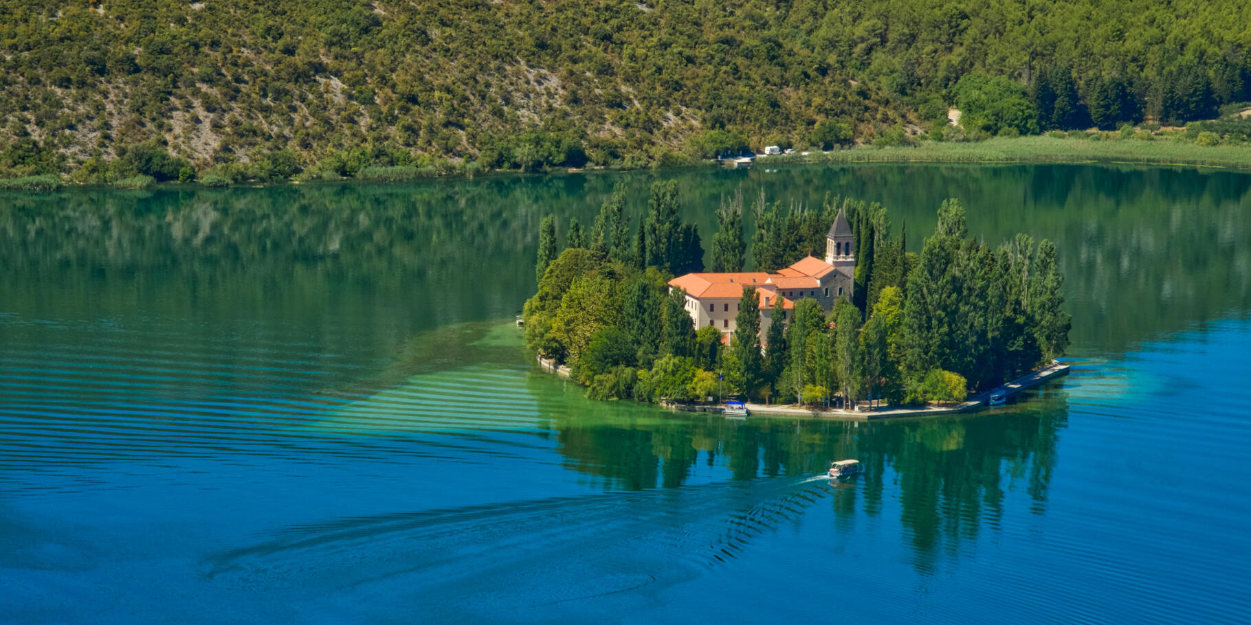 Visitors can explore the park on foot or by bicycle, and boat rides are also available. Among the cultural attractions, the monastery on the island of Visovac on the Krka River is worth mentioning. The park offers various hiking trails and viewpoints, suitable for family walks and more demanding hiking tours. In some parts of the park, swimming in the river or lakes is also possible.