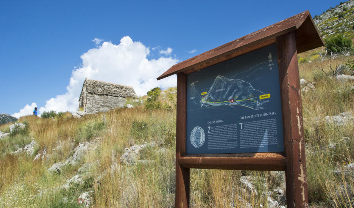 The Diocletian's Road connects Srinjine, the westernmost hamlet of Srednja Poljica, and Žrnovnica, which borders it. Its original width is preserved only in Srinjine, completely preserving ancient Croatian customs still living in Poljica, as well as even older ones that reached Poljica by other routes. The Diocletian's Road, barely five kilometres long, bridges the temporal distance of almost two millennia.